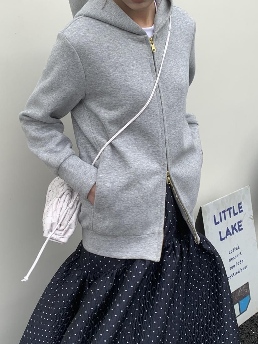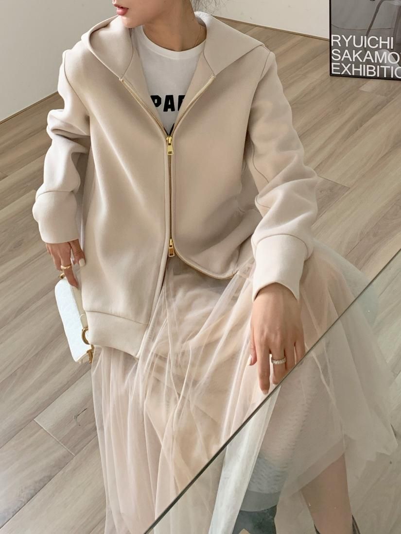 ボンディング素材なのでカジュアルダウンしすぎない、きれいめパーカー