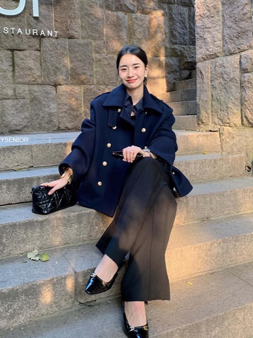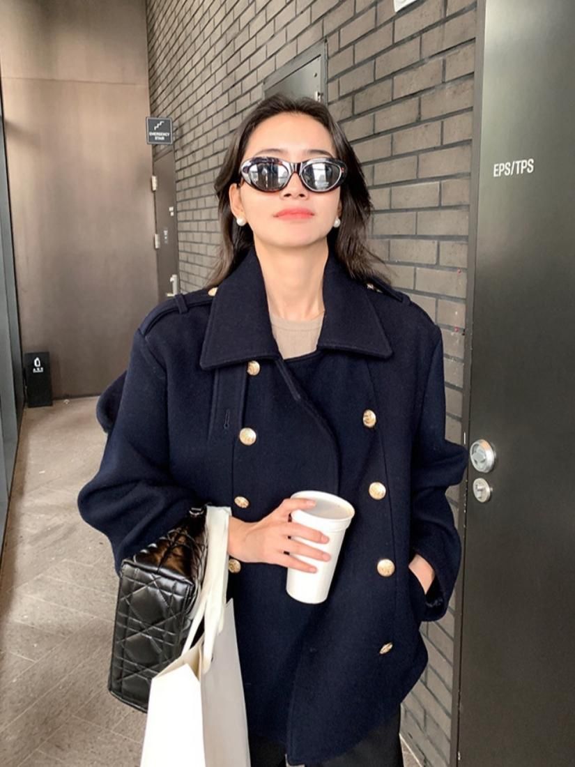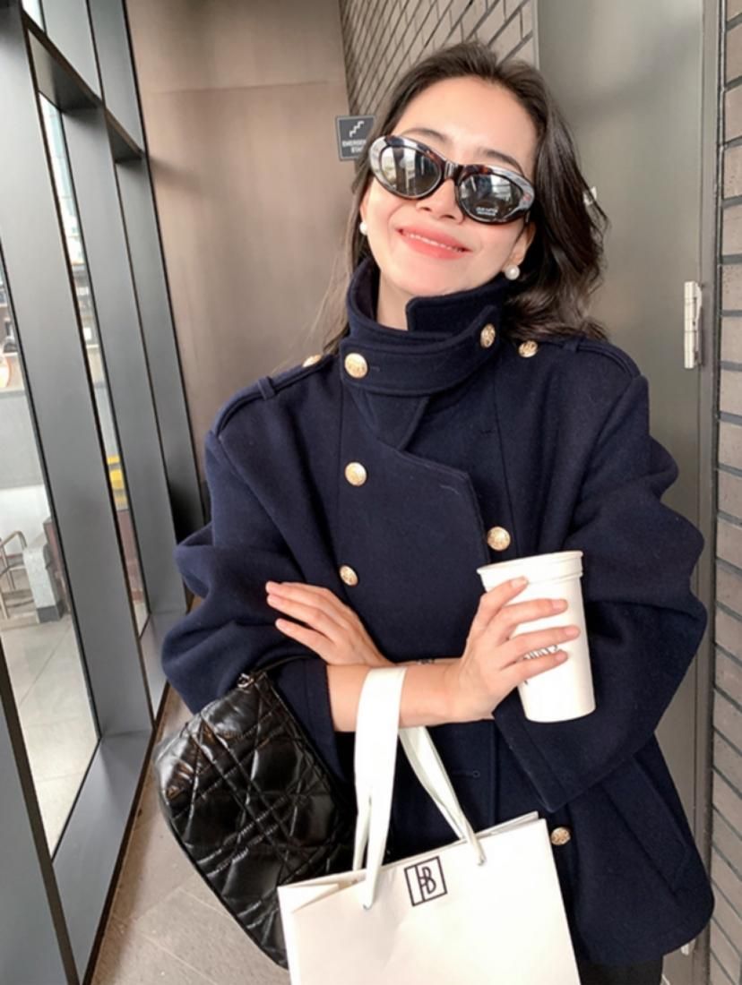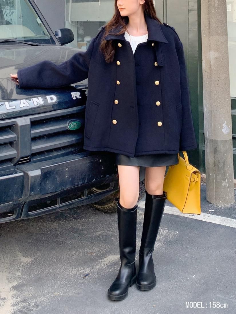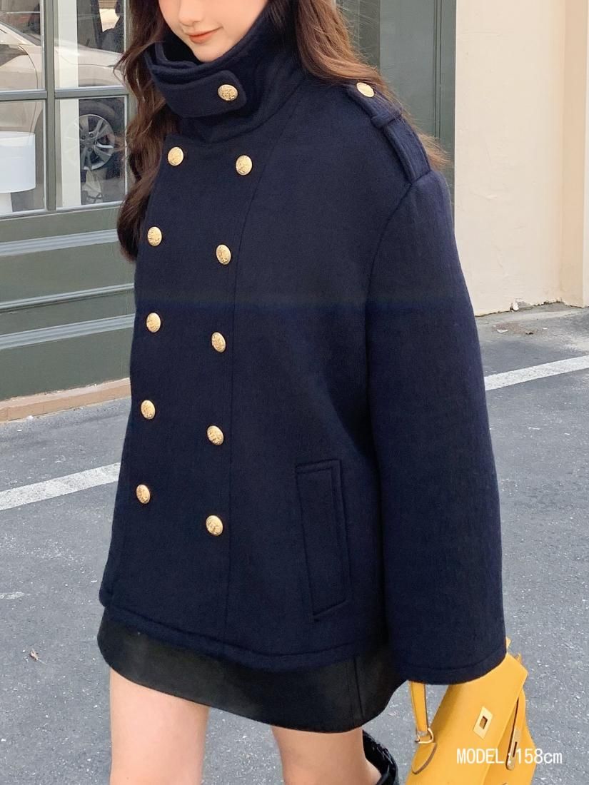 金ボタンがアクセントになっており着映えするアウターです。